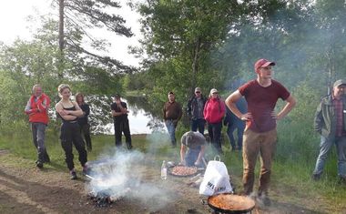 Ett uppskattat inslag var ett stopp där det bjöds på wokad mat och kaffe samt en fantastisk utsikt över en spegelblank skogssjö. Stefan Johansson och Jonny Lundberg guidade oss runt och gav oss mycket information om skogen och vad som sker där.